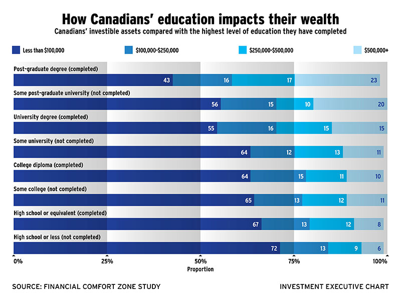 Canadians who establish registered education savings plans (RESPs) for their children are setting their kids up for financial success later in life because there’s a direct correlation between having post-secondary education and wealth, according to recent research from Mississauga, Ont.-based Credo Consulting Inc.