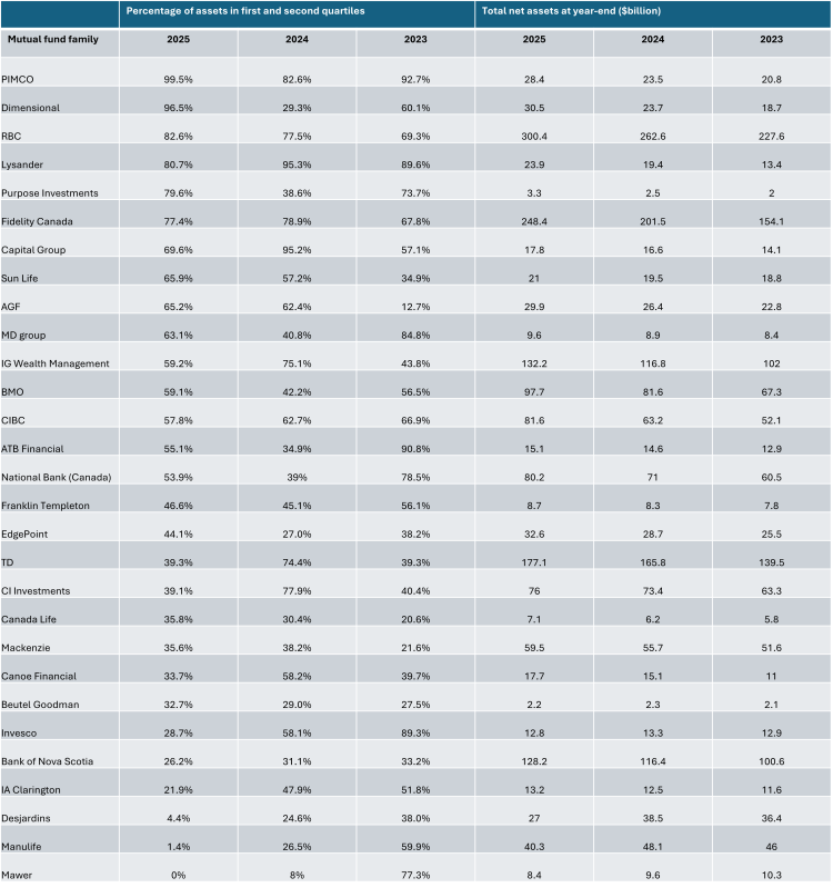 Capital Group Canada had 69.6% of its funds in the first and second quartile.