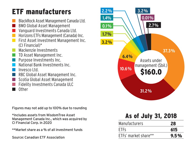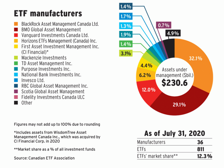 Manufacturer market share, as measured by Canada-listed ETF AUM