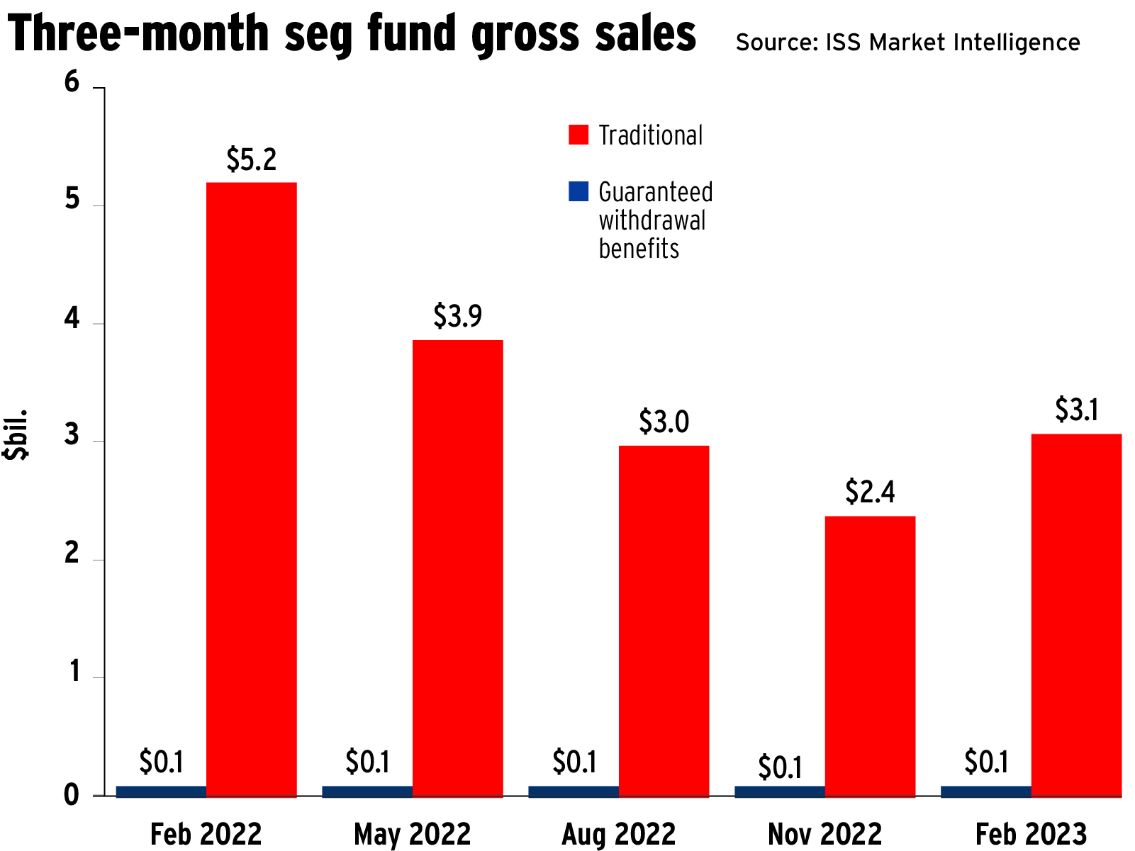 Still, insurance advisors continue to make hefty seg fund sales. Life insurers recorded gross seg fund sales of $14.1 billion in Canada in 2022, down from $19.6 billion in 2021, although 2021 sales were higher than the normal annual range of $12 billion–$14 billion, according to ISS Market Intelligence, said Carlos Cardone, senior managing director with Investor Economics, a unit of ISS.