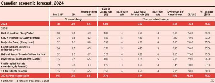 The first half of the year is the vulnerable period, as expected cuts in interest rates will fuel recovery later in the year. Most of the economists anticipate the Bank of Canada’s overnight rate will fall by the end of 2024 to about 3.5%–4%. Marion, however, predicted the overnight rate could drop as low as 3.25%.